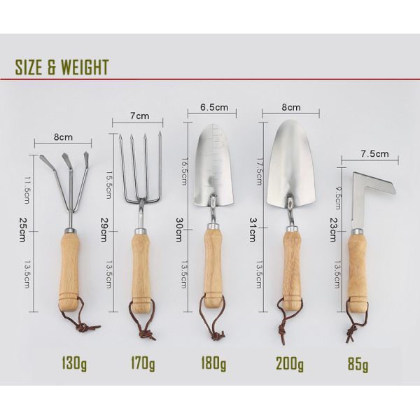 Wooden Handle Stainless Steel Garden Hand Tools Five-piece Set