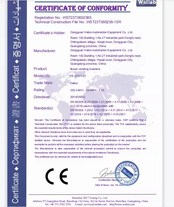 | Type: | Flower Vending Machine |