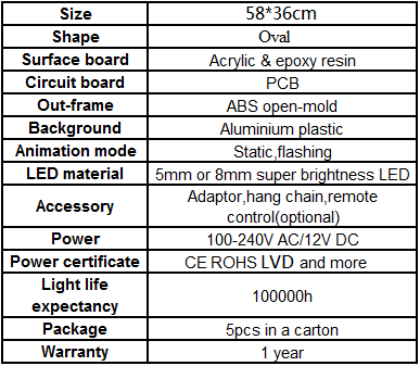 Packing( LED sign + adapter + chain , 5pcs in a carton )